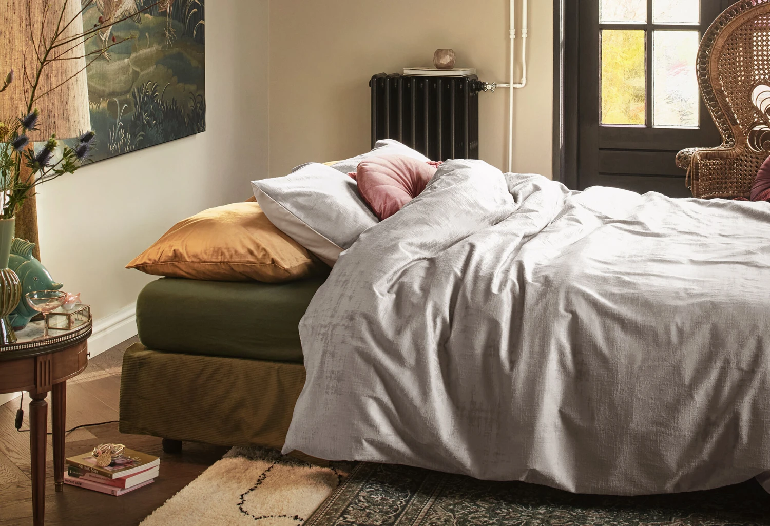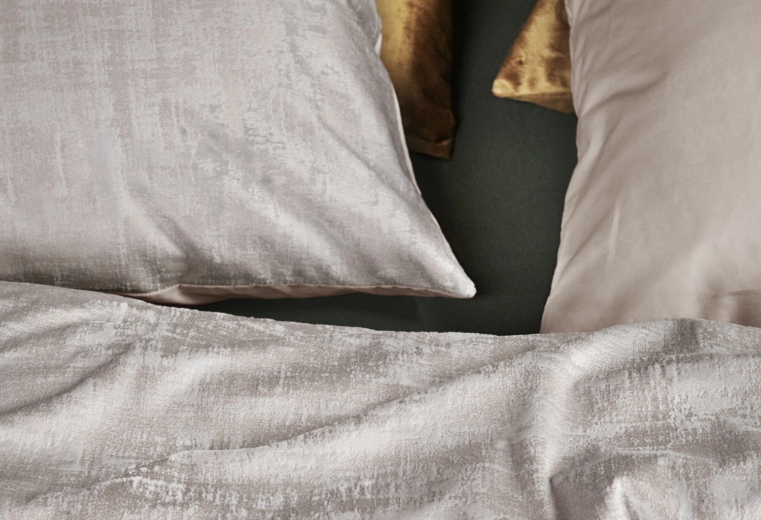 Sweet dreams are made of… geprägtem Samt! Die Bettwäsche Textures von At Home by Bedding House ist im wahrsten Sinne des Wortes ein samtig-weicher Bettbezug, der langlebig und zeitlos ist. Der weiche, glänzende graue Samt passt perfekt in eklektische Interieurs. Die Rückseite des Bettbezugs ist aus Baumwolle in einem unifarbenen Hellgrau.