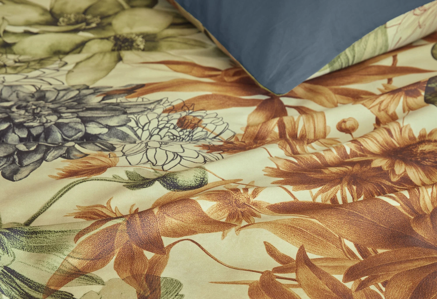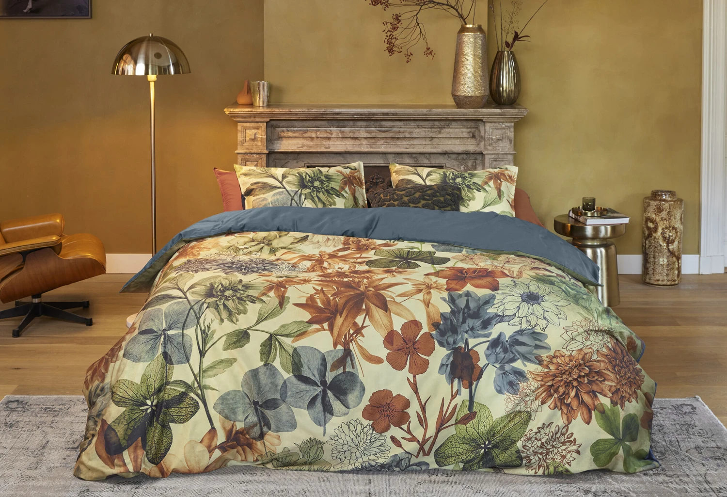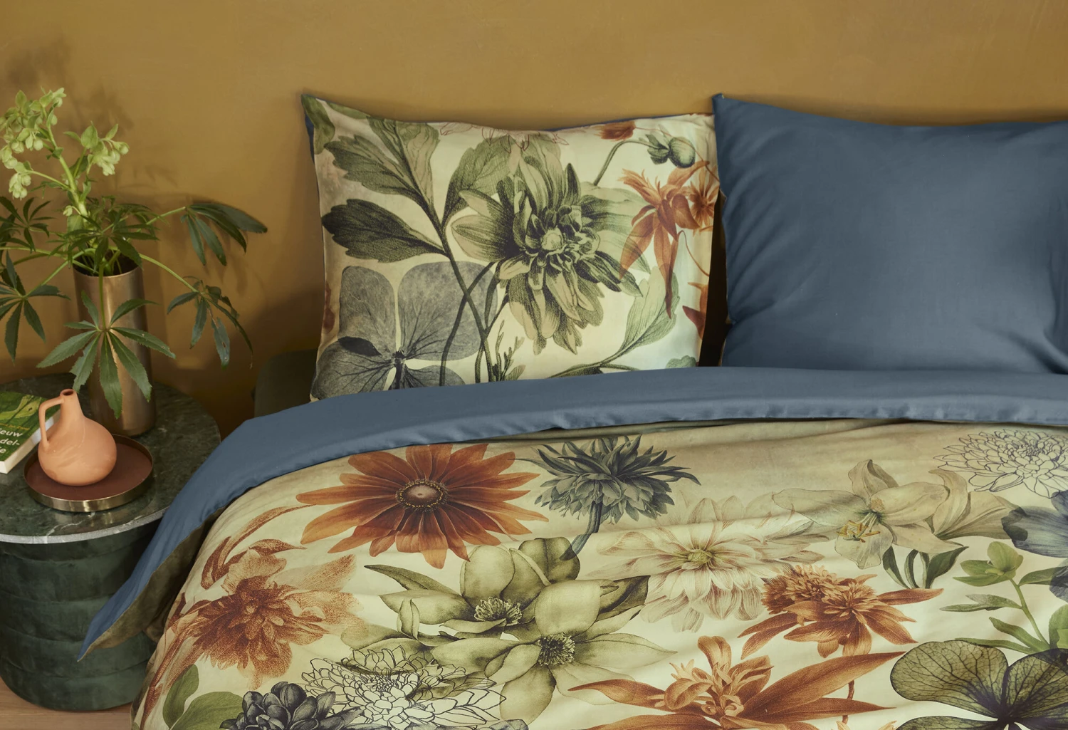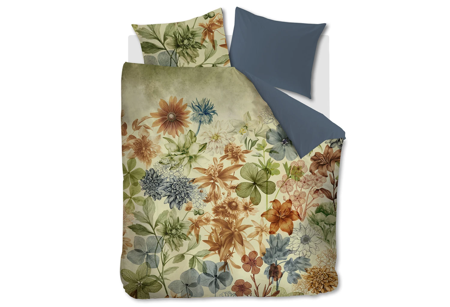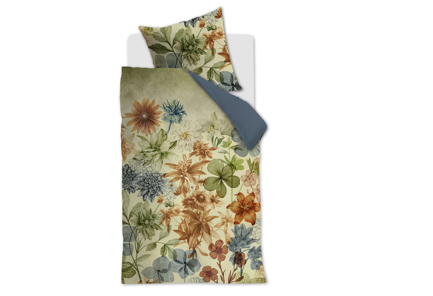 Bringen Sie die Natur in Ihr Zuhause mit der Bettwäsche Fiona von Beddinghouse. Der Bettbezug besteht aus vergrößerten Blättern auf dunkelgrünem Hintergrund. Diese Bettwäsche ist vom Botanik-Trend inspiriert. Die Rückseite des Bettbezugs ist einfarbig Olivgrün ausgeführt.
