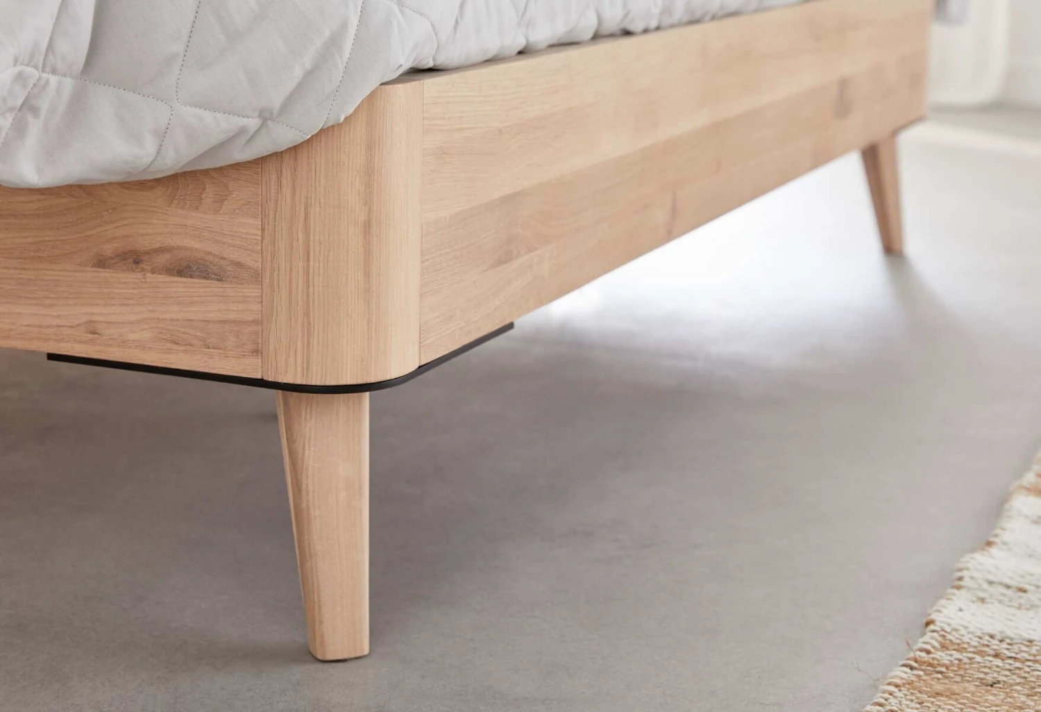 Das Bettgestell Balance Gentle hat elegante und sanfte Formen. Warme Holztöne, weicher Stoff und schwarzen Stahlelementen sorgen für die richtige Balance und eine ruhige Atmosphäre in Ihrem Schlafzimmer.
