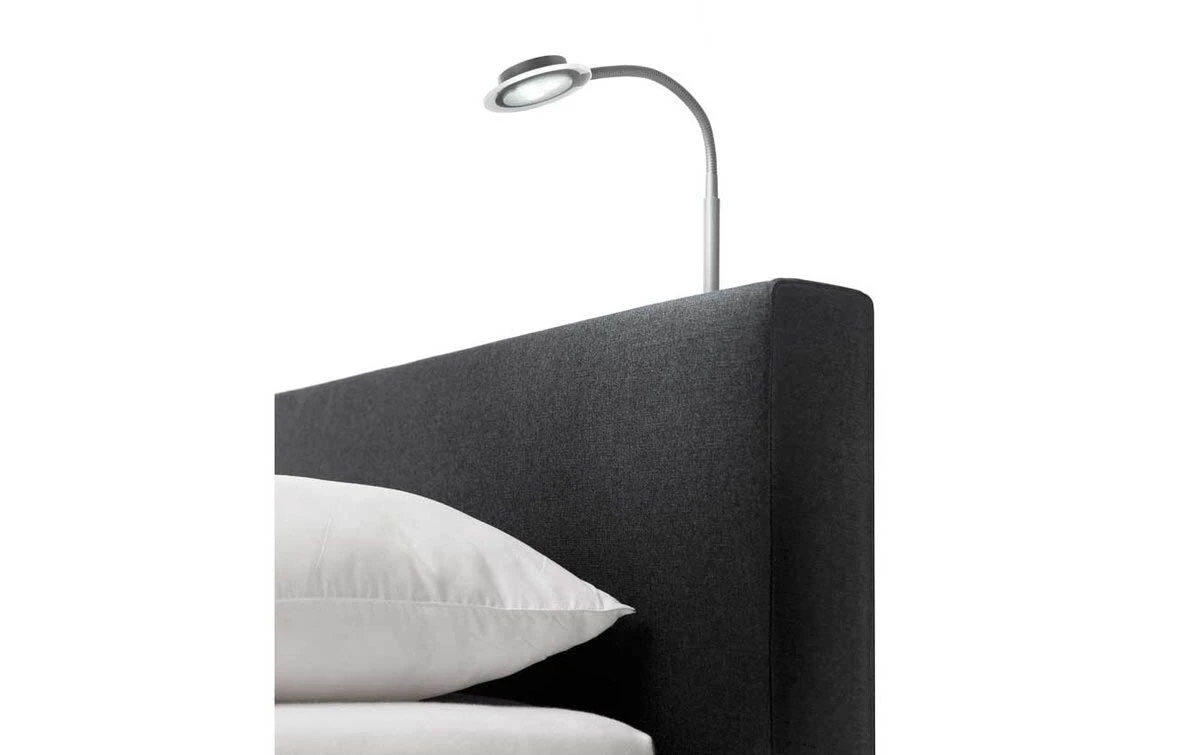 Wollen Sie Ihr Boxspring ganz vollständig machen? Bestellen Sie dieses trendige Bettleuchte ‚Ufo‘. Die Bettleuchten mit hellen LED-Lichtern, ermöglichen Ihnen das Lesen im Bett oder dienen einfach nur als dekorative Beleuchtung. Die Leuchten können an alle bei uns erhältlichen Kopfteile montiert werden, und passen in der Regel auch auf andere Kopfteile. Sie sind leicht zu befestigen. Mit ein paar Schrauben auf der Rückseite oder an der Seite des Kopfteils. An den Leuchten selbst ist ein Ein / Aus-Schalter angebracht, so dass Sie es einfach bedienen können.
