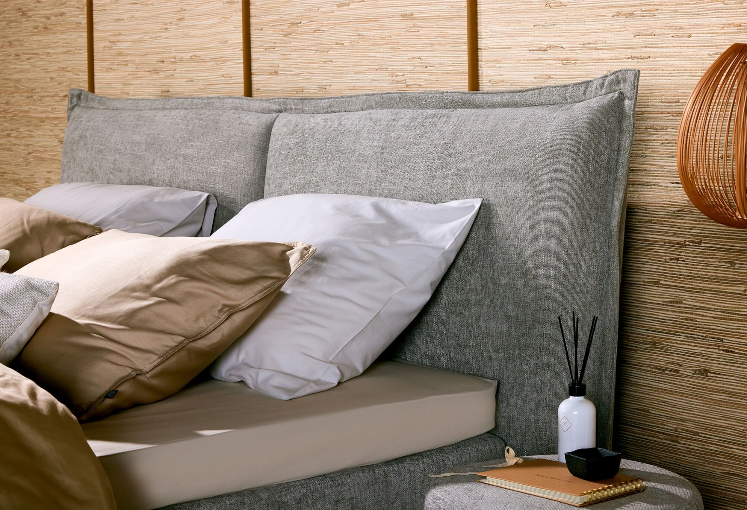 Das Kissenkopfteil des Boxspringbetts Capella Cuscino ist höher als andere Kopfteile und hat dadurch eine harmonische, einladende Ausstrahlung.