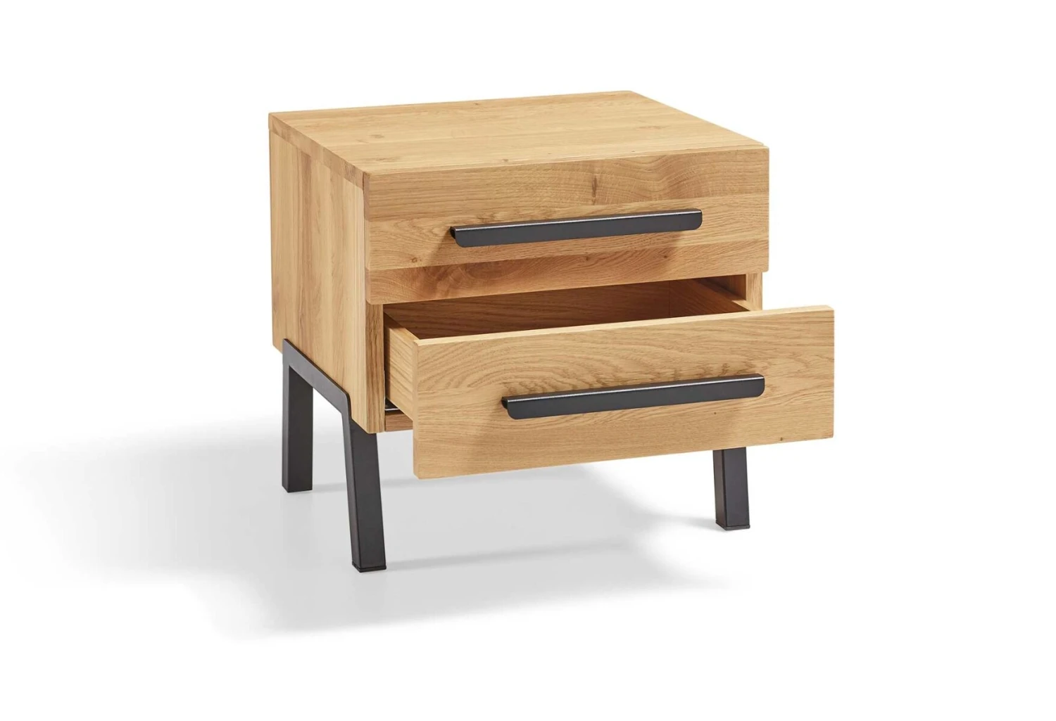 Die Holzfarben des Nachttisches können passend zu den Bettgestellen aus massiver Eiche gewählt werden. Zur Auswahl stehen zudem die Füße der Bettgestelle Focus, Pure, Raw und Timeless.