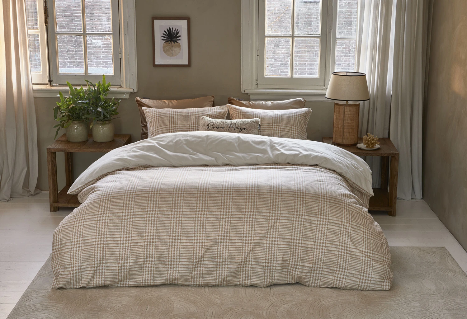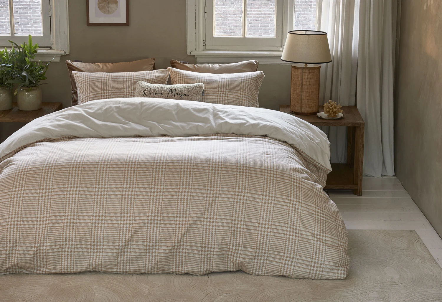 Die Bettwäsche Eleanor von Rivièra Maison besteht aus herrlich weichem Biber, 100 % Baumwolle. Biber sorgt für behagliche Wärme, sodass dieser Bettbezug insbesondere in kühleren Nächten angenehmen Schlafkomfort bietet. Die Bettwäsche Eleanor ist mit einem zeitlosen Karo-Print versehen, der auf einem Hahnentritt-Motiv basiert. Der Bettbezug ist mit einer unifarbenen Rückseite ausgeführt. Er ist in verschiedenen Farbausführungen erhältlich.