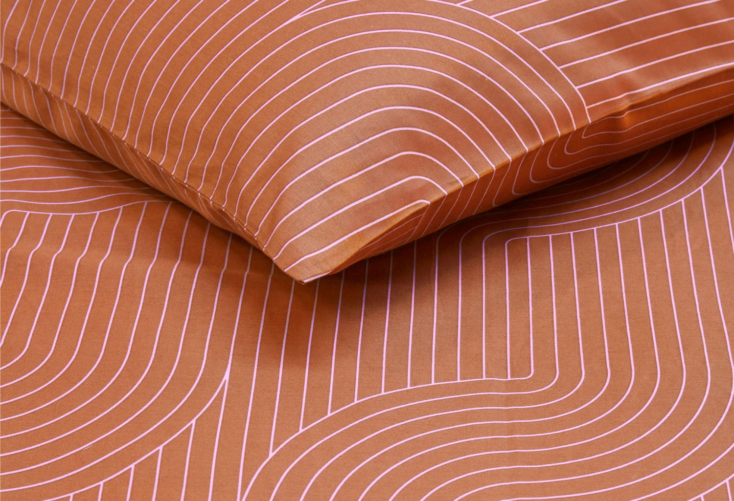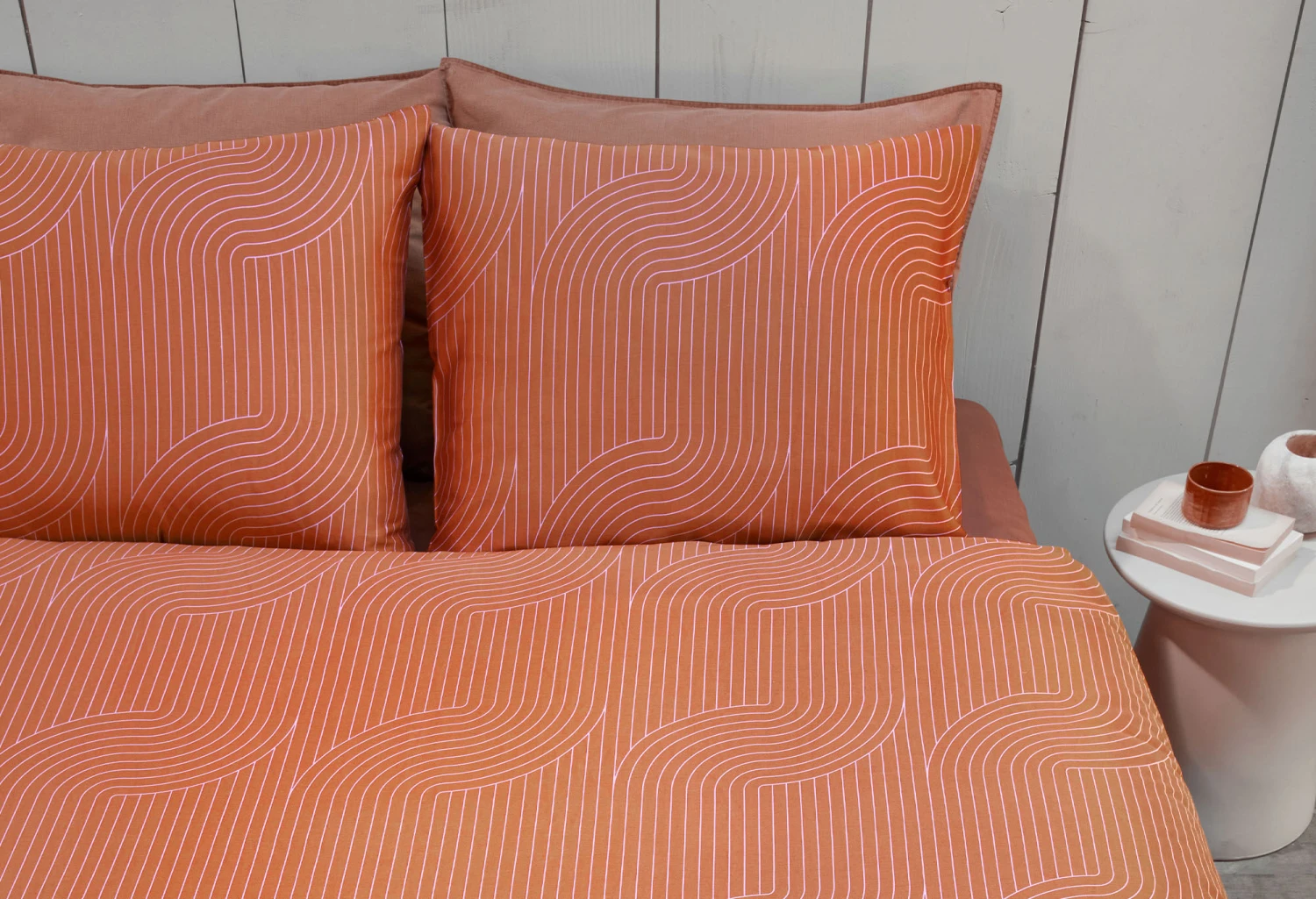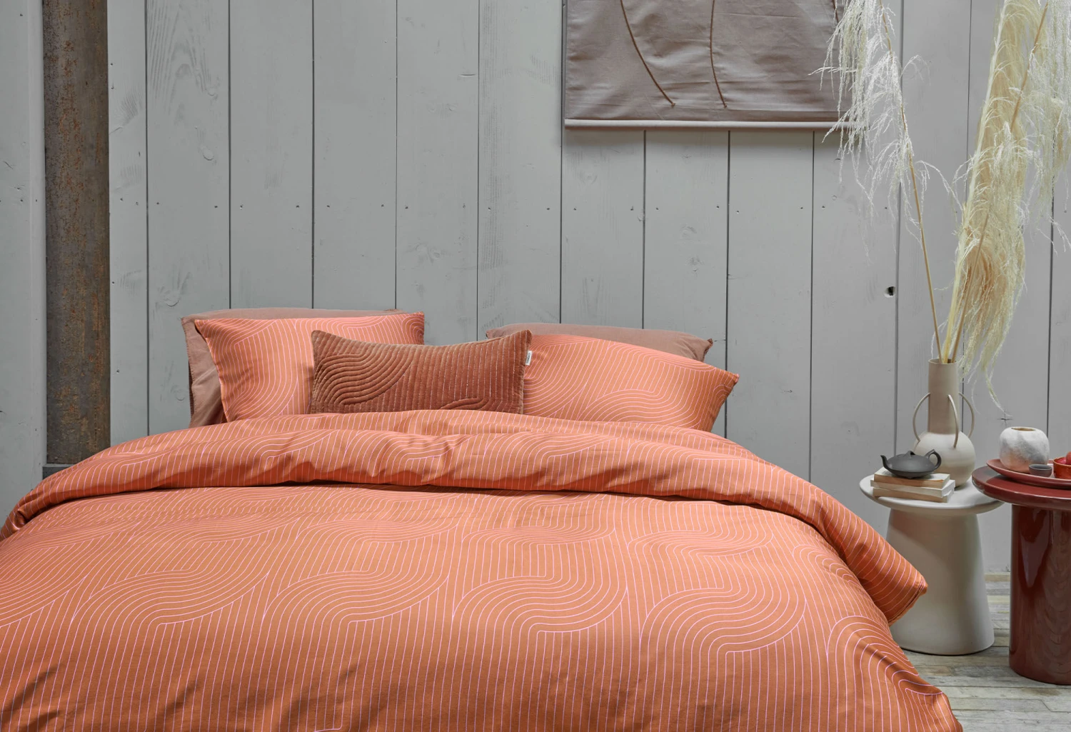 Die Bettwäsche Broom Bow aus der Bettwäschekollektion von vtwonen ist eine prachtvolle Bettwäsche aus reinem hochwertigem Mako-Satin. Das zarte grafische Muster in Schwarz hebt sich wunderschön vom terrafarbenen Untergrund ab. Mako-Satin hat einen schönen Glanz, der für ein edles Aussehen sorgt. Vorder- und Rückseite dieser Bettwäsche sind gleich gestaltet. Die Bettwäsche lässt sich gut mit dem Dekokissen Broom Bow von vtwonen kombinieren.