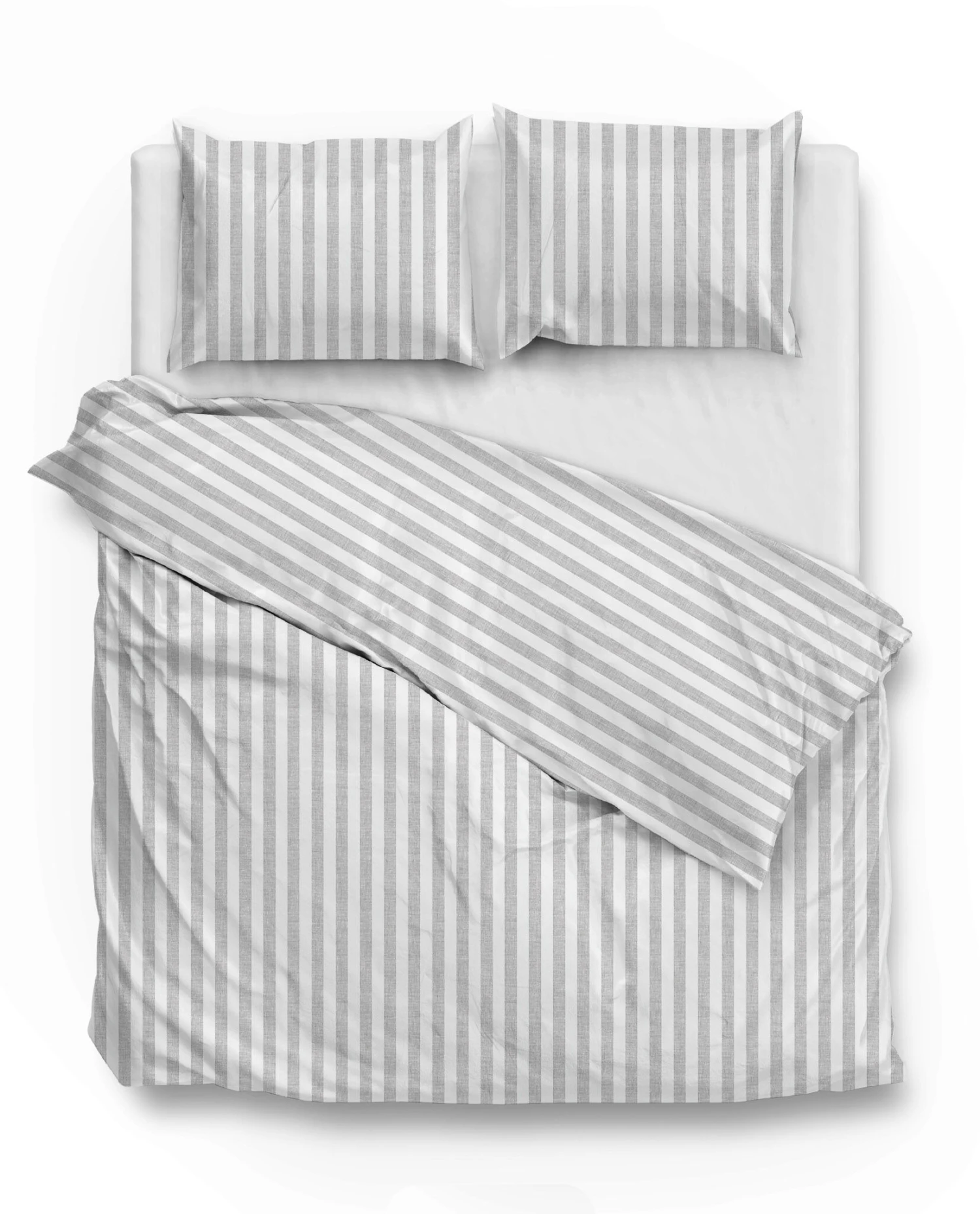 Banda di Lino Bettwäsche Taubengrau. Die Bettwäsche ist mit einem Reißverschluss und traditionellem Streifenmuster in Taubengrau versehen. Diese klassisch grau gestreifte Bettwäsche ist aus glatter und weicher Baumwolle gefertigt. Das sorgt für einen angenehmen Schlaf und strahlt Ruhe und Wärme aus. Diese Bettwäsche ist elegant und lässt sich leicht mit vielen Schlafzimmerstilen kombinieren. ZoHome verbindet Basic Chic Design mit Langlebigkeit und Qualität. ZoHome glaubt an eine nachhaltige Beziehung und Verbindung mit dem Kunden. Die Designs von ZoHome passen zu jeder Einrichtung und sind aus 100% hochwertiger Baumwolle gefertigt. Baumwolle ist ein Naturprodukt, das atmungsaktiv ist und Feuchtigkeit gut absorbiert. Wird mit passendem Kissenbezug geliefert. Starke Qualität und in verschiedenen Farben erhältlich. Oekotex-zertifiziert.